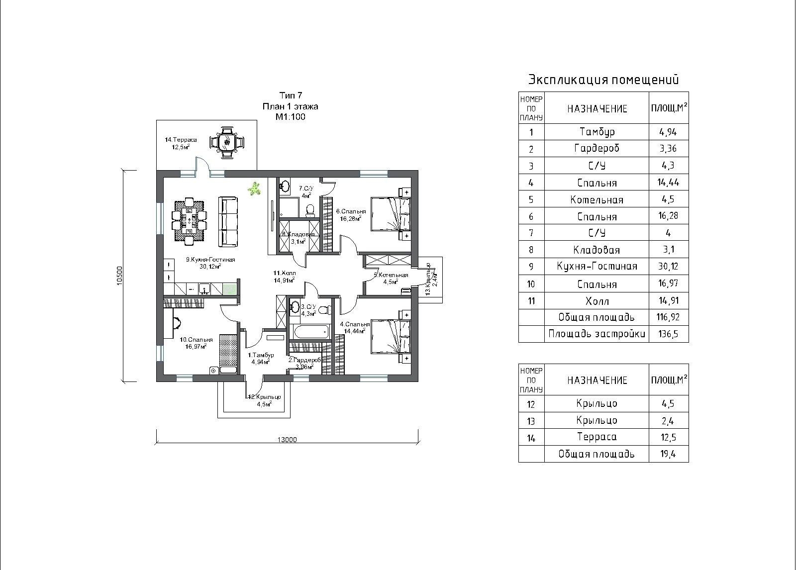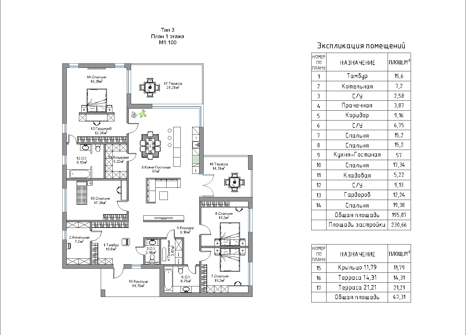 С учетом всех строительных норм и требований. Проект включает архитектурные, конструктивные и инженерные решения, необходимые для начала строительства.
